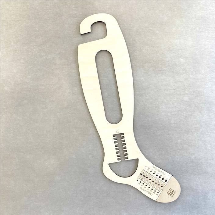 (pohkeen ympärys 43-51cm). Sukkaplokki on laserleikattu suomalaisesta