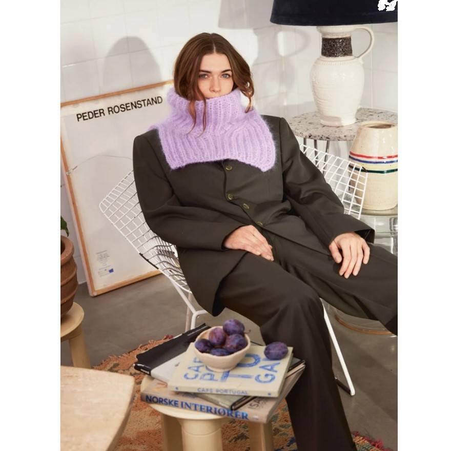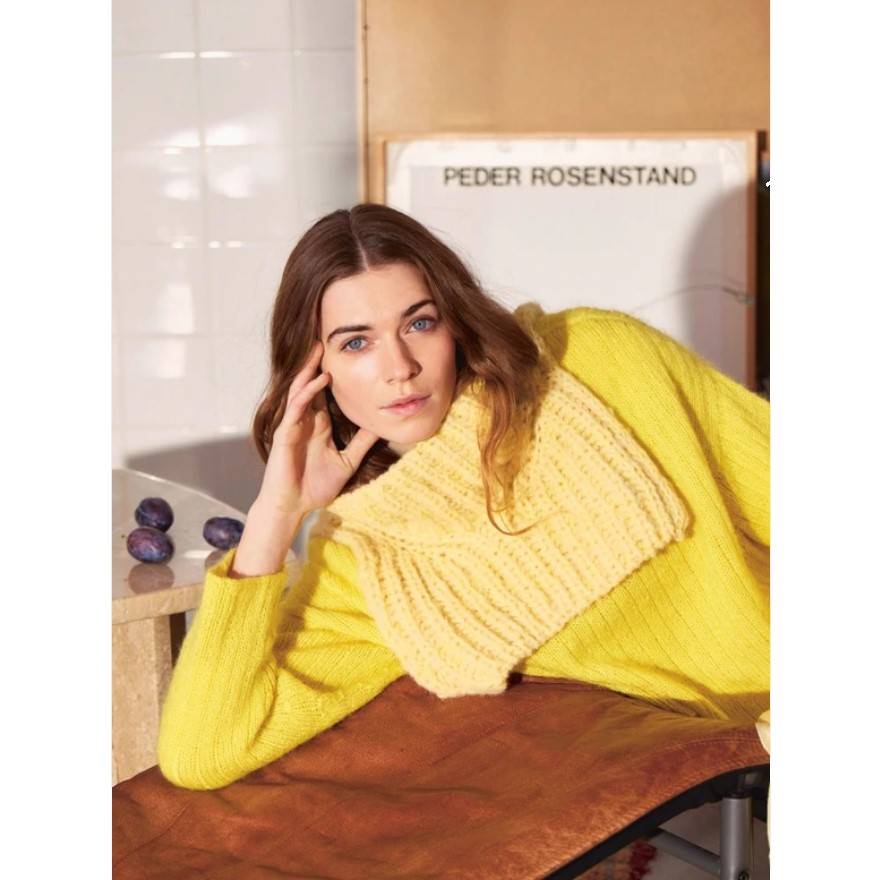 Kauluri neulotaan ylhäältä alas patenttineuleena. Valitse kolmesta vaihtoehdosta: 1. Yksi säie Poppy-, Kos ja Tynn Silk Mohair Print -lankaa yhdessä. 2. Yksi säie Tynn Silk Mohairia ja kaksi säiettä Börstet Alpakkaa yhdessä. 3. Kaksi säiettä Ballerin Chunky Mohairia yhdessä.