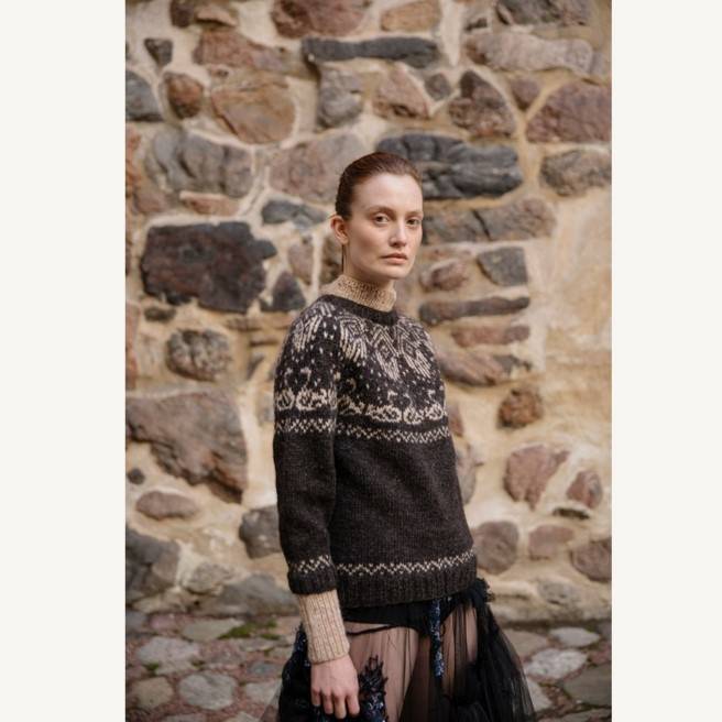 Kirja sisältää 20 kirjoneuleohjetta, jotka ovat saaneet innoituksensa Kalevalan runoista. Monipuoliseen kokoelmaan kuuluu villapaitojen ja -takkien lisäksi myös asusteita. Klassisen kaarrokeneuleen ohella paidoissa hyödynnetään erilaisia tyylejä ja rakenteita. Runojen tarinat heräävät eloon kirjoneulekuvioissa, joita löytyy niin kaarrokkeista, helmoista kuin hihoistakin – ja ne kaikki neulotaan aina vain kahdella värillä kerrallaan.