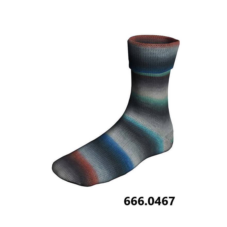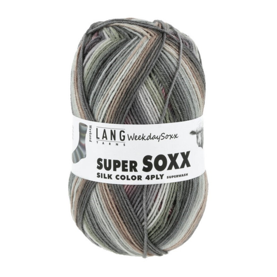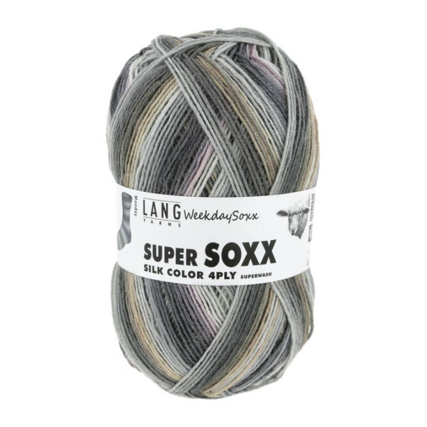 Super Soxx Silk Color -langan värit liukuvat vähitellen väristä toiseen, yhdisellen harmonisesti harmaata ja raikkaita kontrastivärejä. Superwash-käsittely tekee langasta helppohoitoisen ja konepestävän.