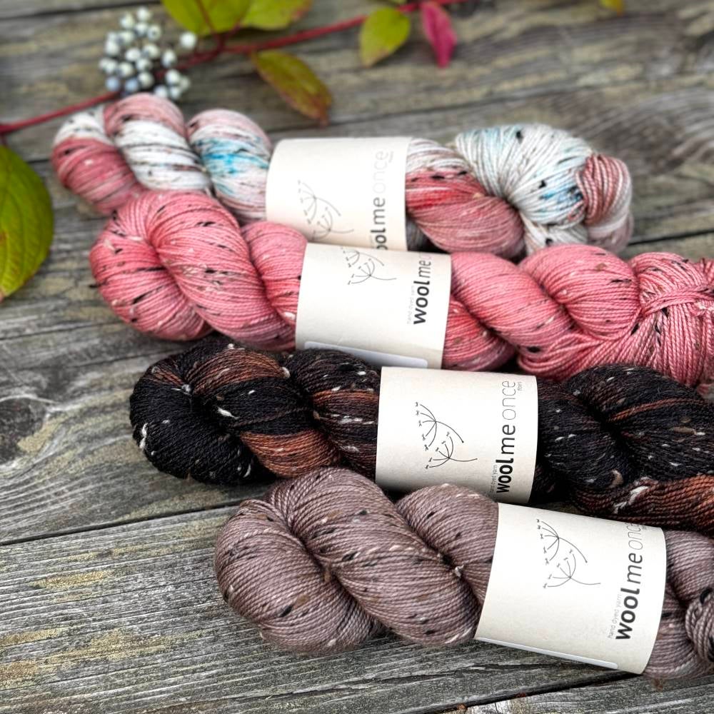 Wool Me Once Fibersin langat värjätään Keski-Pohjanmaalla eläintaloudessa happoväreillä pienissä erissä, ja värisävyt vaihtelevat hieman värjäyserien mukaan. Suosittelemme raidoittamaan lankoja muutaman kerroksen verran uutta vyyhtiä aloitettaessa tasaisemman lopputuksen saavuttamiseksi. Tilaukseen pyritään mahdollisuuksien mukaan laittamaan aina samaa erää olevat vyyhdit, mutta mikäli haluat tilata isomman erän lankaa suurempaa projektia varten, ota yhteyttä asiakaspalveluumme.