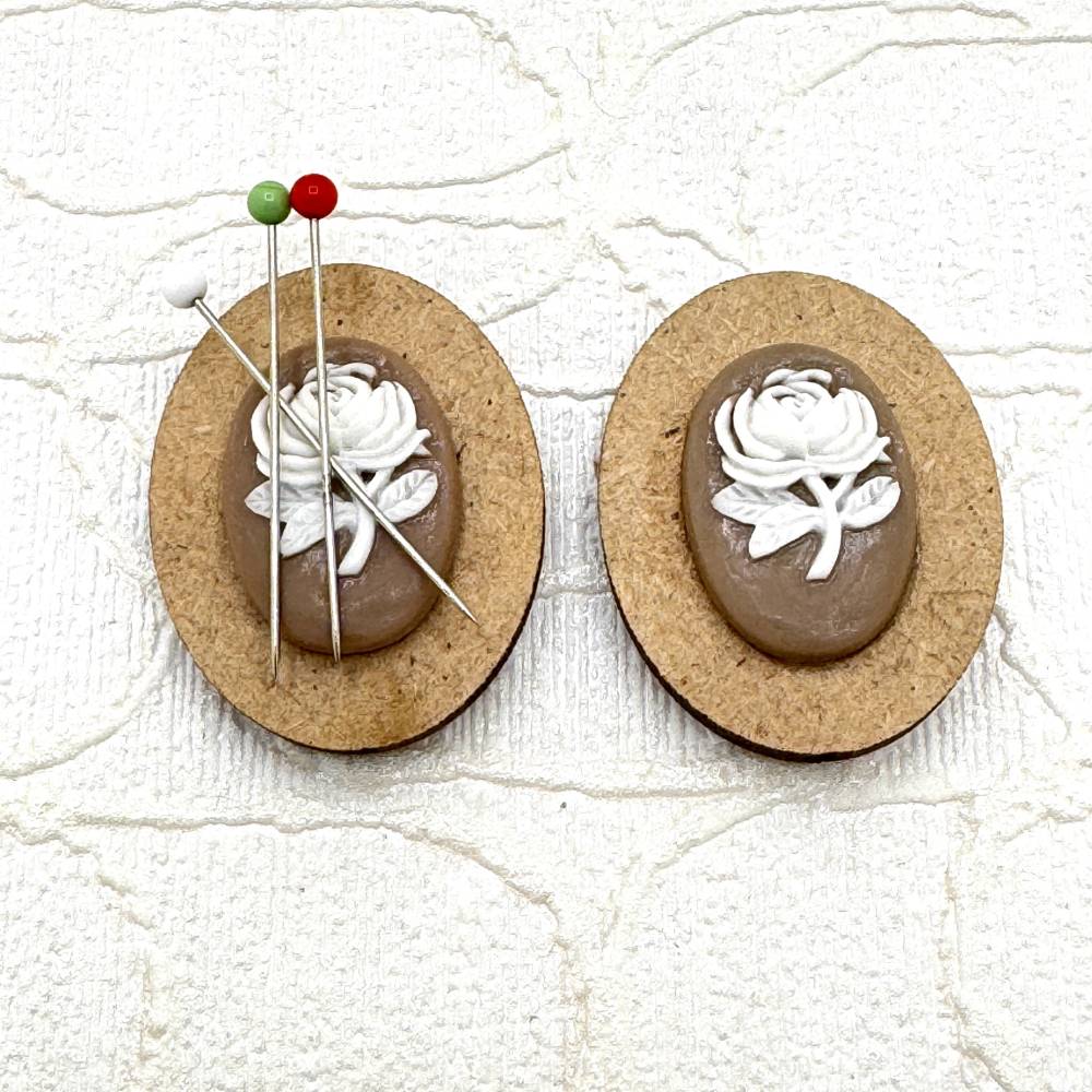 Neulasi pysyvät tallessa tässä kauniissa Camee aiheisessa magneettisessa neulanpidikkeessä. Se on kätevä ja hyödyllinen ompelu- ja käsitöissä. Pidikkeessä on kaksi magneettia, toinen on kiinni vanerilevyssä ja toinen on irrallinen. Irtonainen magneetti mahdollistaa, että voit käyttää tätä pidikettä vaikka rintakoristeena.