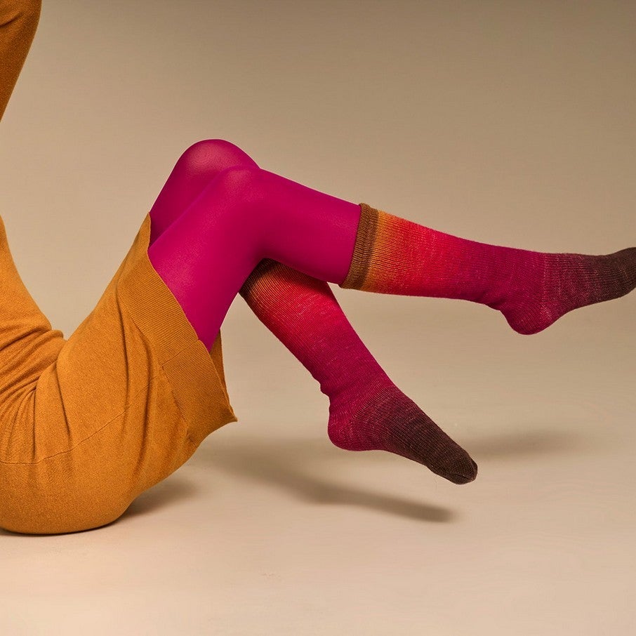 Liukuvärjätty lanka tarjoaa upeat, elävät värit, joista syntyy kauniit ja persoonalliset sukat. Jokaisen kerän sisältä löytyvä merkkilanka helpottaa työtä – saat yhdestä kerästä identtiset pitkävartiset sukat ilman ylimääräistä sovittelua.