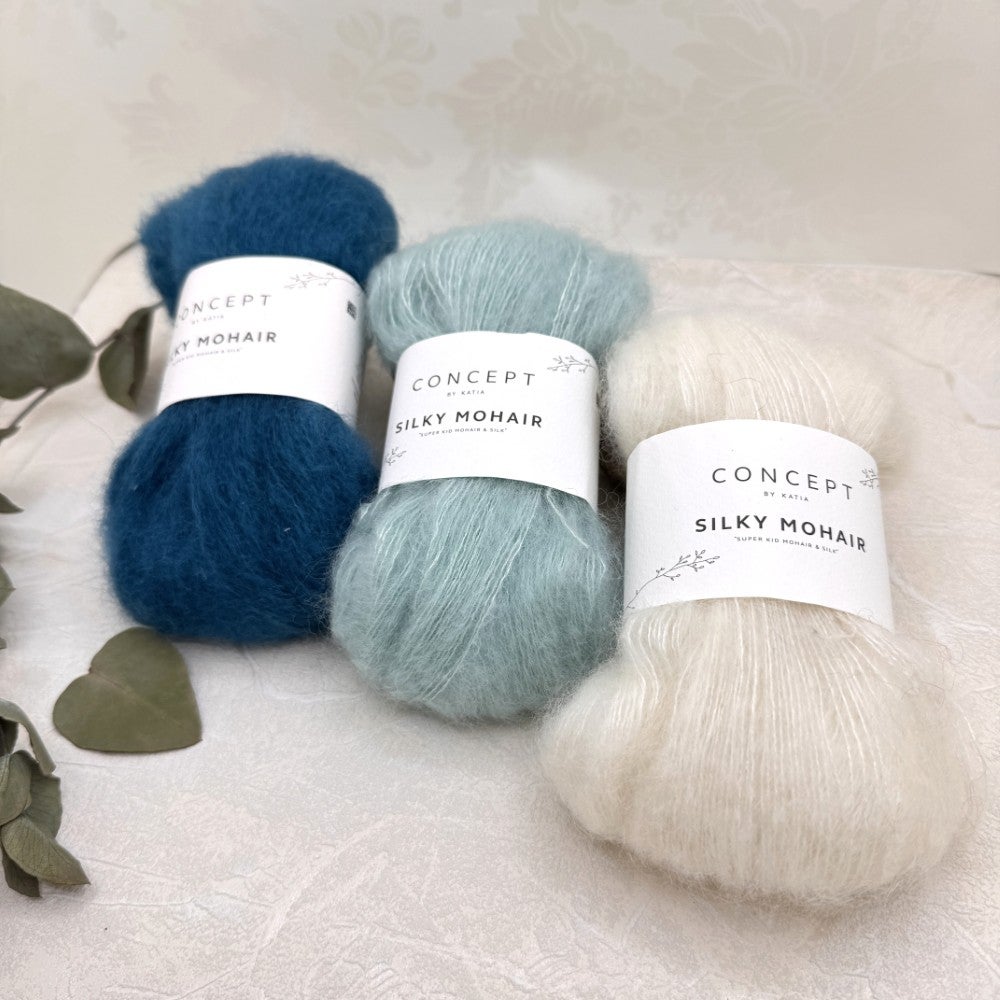 Concept by Katia Silky Mohair on korkealaatuinen mohairsekoitelanka. Se koostuu superkid-mohairista, silkistä ja osittain luonnonviskoosilla korvatusta silkkisydämestä, mikä takaa sekä kestävyyden että tasaisen kiillon. Lanka on kevyt, lämmin ja miellyttävän pehmeä iholla.