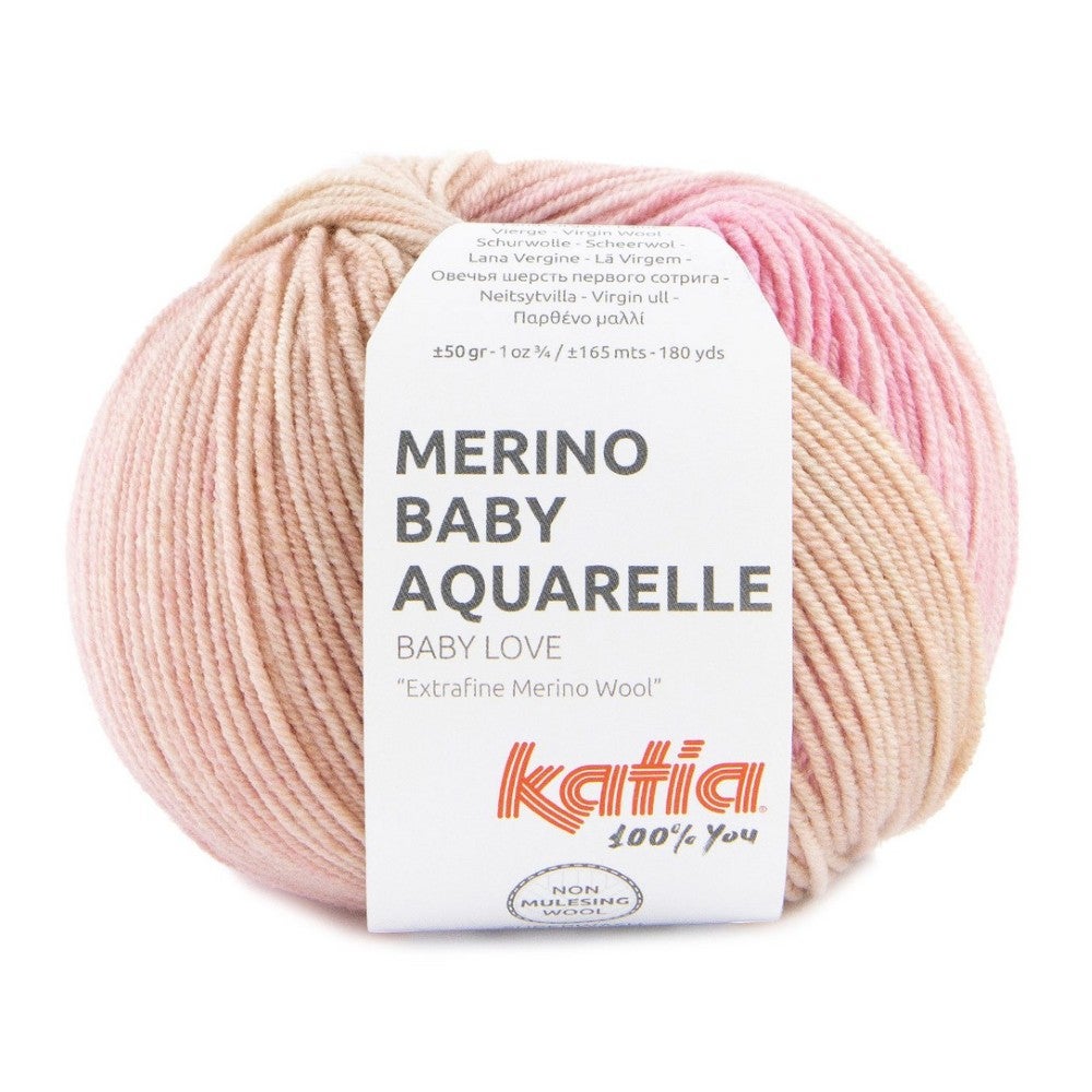 Merino Baby Aquarelle sopii mainiosti yhdistettäväksi yksivärisen Katia Merino babyn kanssa.